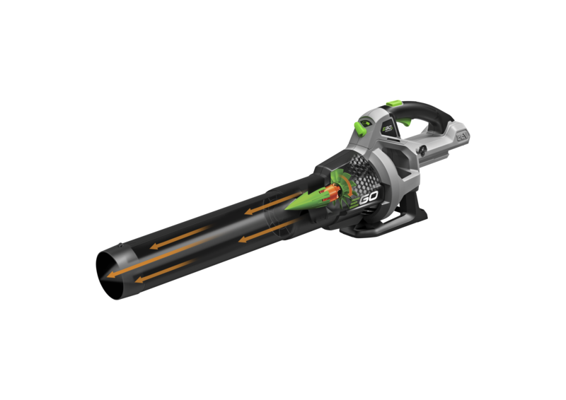 Powered by a high-efficiency brushless motor, the LB5300E EGO Power+ blower features jet turbine technology and large diameter tube to give maximum airflow. With a variable speed function design to keep you in control, it also features a Turbo Boost mode capable of putting out 900m³ of air per hour.